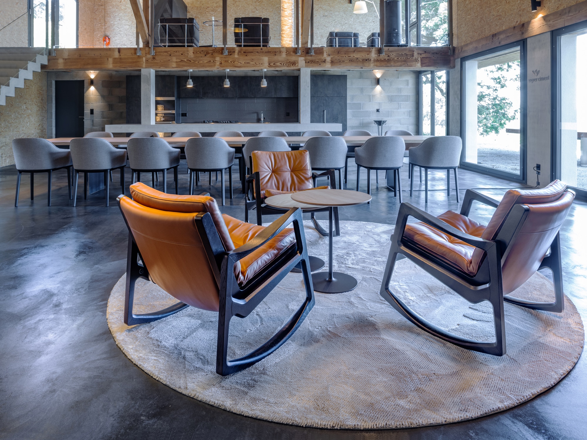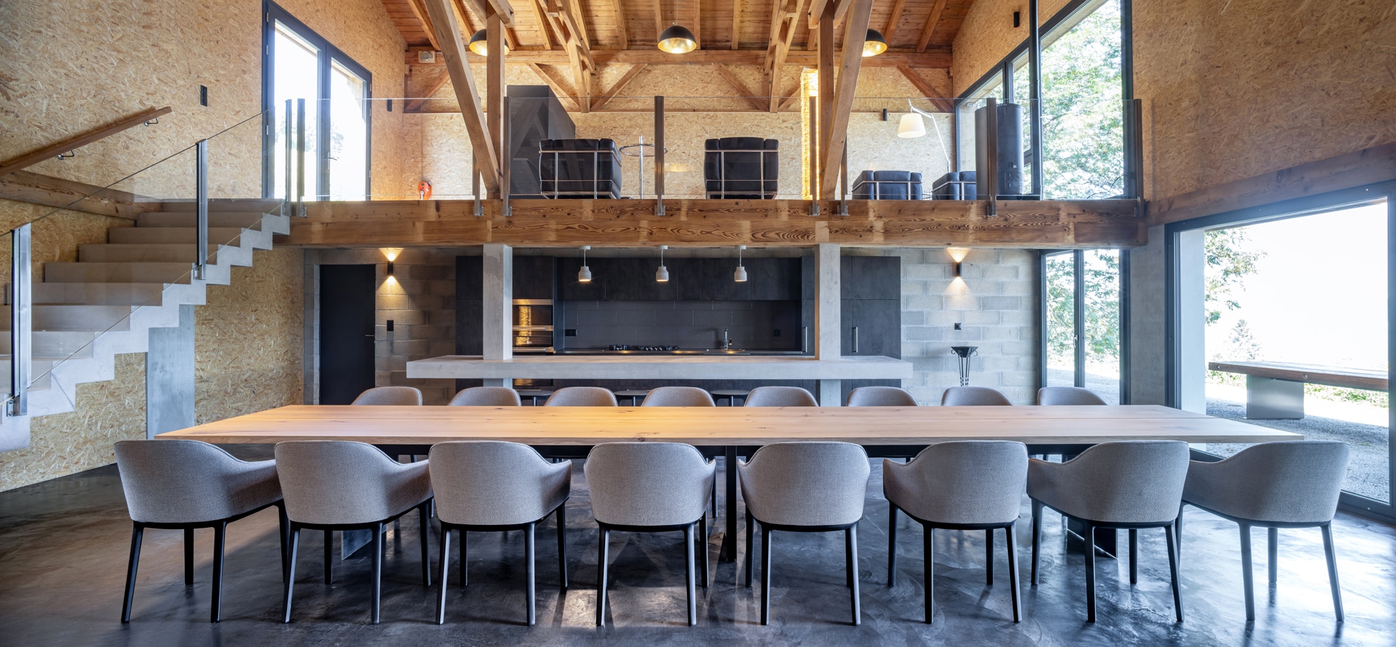 Für Vigier, einem Unternehmen für Zement- und Betonproduktion im Berner Jura, wurde eine einstige Berghütte in Péry-La Heutte auf rund 1000 m über Meer zu einem vielseitigen Raum für Events, Meetings und Schulungen umgestaltet.